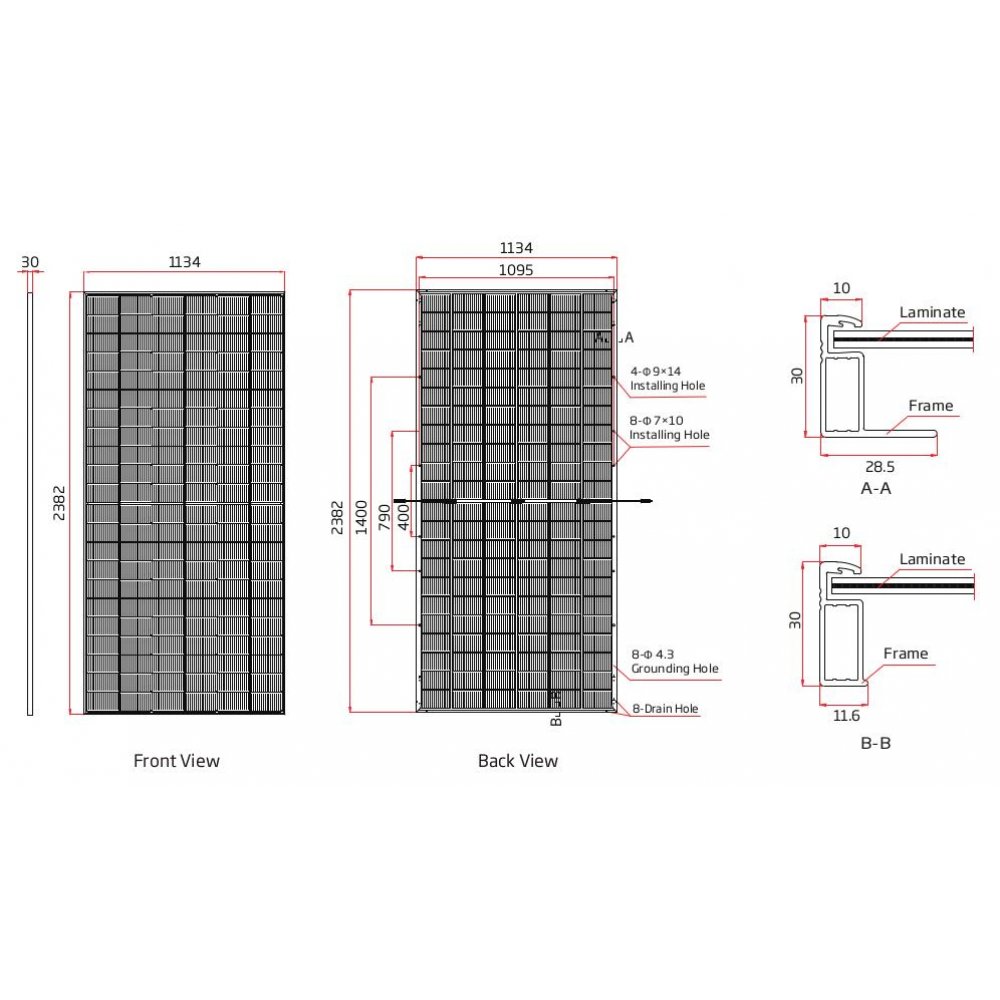 - Сертификация TUV и Долговечность. Сертификация TUV подтверждает высокий стандарт безопасности и надежности. Защита солнечного элемента и использование двухслойного стекла обеспечивают долговечность и увеличивают эффективность панели на протяжении всего срока службы.