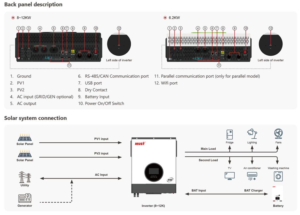 Гибридный инвертор MUST PH19 10048 EXP 2 выхода AC